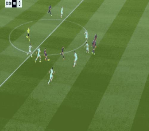 上半场结束,巴萨2-0暂时领先。下半场开始只有4分钟,巴萨前场持续施压完成抢断。
