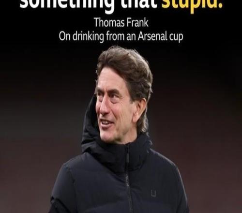 英超第21轮,热刺客场对阵伯恩茅斯,赛前,热刺主帅托马斯-弗兰克被拍到手里拿着一个印有阿森纳队徽的杯子。此役客场对阵伯恩茅斯,热刺主帅托马斯-弗兰克被拍到在赛前手里拿着一个