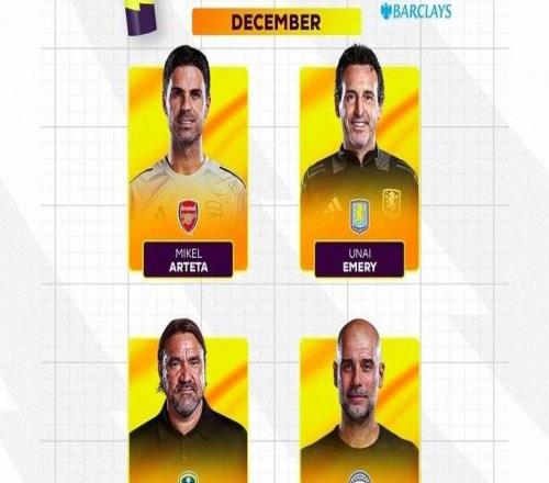 英超12月最佳教练提名:阿尔特塔、瓜帅、埃梅里及法尔克入围