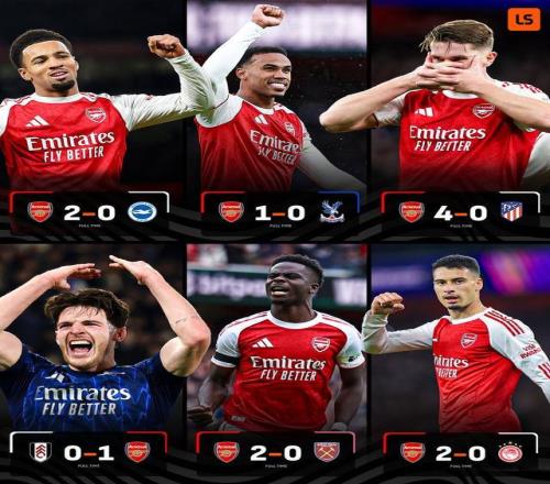 英联杯第四轮,阿森纳主场2-0击败布莱顿,至此,阿森纳最近6场比赛均以零封取胜,这是他们自2002年以来首次做到这一点。阿森纳各项赛事最近6场比赛先后击败奥林匹亚科斯、西汉姆联